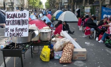 El jefe de Gabinete, Marcos Peña, y la titular de Desarrollo Social, Carolina Stanley, realizaron un acto junto a CCC, Barrios de Pie y CTEP. Las organizaciones amenazan con lanzar cortes y protestas, si no se amplía el bono de fin de año