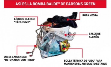 El balde bomba que provocó heridas a por lo menos 22 personas que viajaban en una formación del metro londinense presentó una falla que hizo que no estallara en su máxima capacidad.
