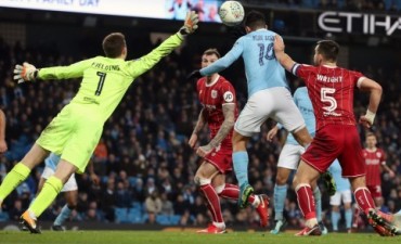 El Kun marcó sobre la hora el gol del triunfo ante Bristol City, de la segunda división, por 2 a 1, en condición de local, en la ida de las semifinales.