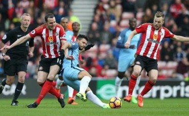 El delantero del seleccionado argentino, Agüero marcó este sábado un gol de penal en la victoria de los ciudadanos por 4-0 sobre Stoke City, en un partido correspondiente a la fecha 35 de la liga de fútbol inglesa.
