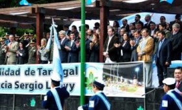 Junto al gobernador Juan Manuel Urtubey y al intendente de Tartagal, Sergio Leavy, el intendente Miguel Isa, participó esta mañana del izamiento de los pabellones en Plaza San Martín y posteriormente realizó el depósito de una ofrenda floral, en el marco del 90 aniversario de la fundación de Tartagal
