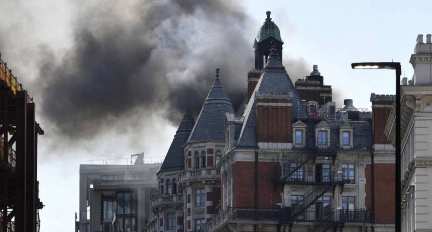 Varios bomberos trabajan para sofocar el incendio del hotel Mandarin Oriental de Londres.