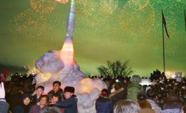 La capital de Pyongyang recibió el Año Nuevo con esculturas de hielo en forma de misiles balísticos.