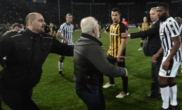 El presidente del PAOK, portando una pistola, amenaza al árbitro en el césped