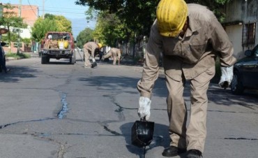 Personal de la Secretaría de Obras Públicas trabaja para reconstruir las placas de hormigón dañadas, el cordón cuneta y ensanchar las veredas sobre calle Catamarca , desde San Luis a La Rioja.