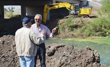 El secretario de Recursos Hídricos de la Provincia, Alfredo Fuertes, recorrió el primer sector donde se ejecutan las obras de saneamiento del río Arenales para evitar eventuales desbordes en la época de lluvias.