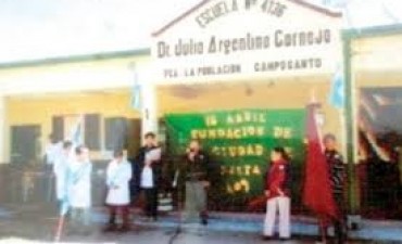El presidente de Bolivia, Evo Morales, visitó hoy la escuela de su infancia en Campo Santo, en la provincia argentina de Salta, donde abrazó a su profesora Elba Kutny, a sus ex compañeros y se emocionó al ver una fotografía donde vestía mandil blanco como alumno.