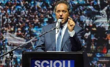 El candidato a presidente por el Frente para la Victoria, Daniel Scioli, fue el orador central del acto de cierre de campaña en el Luna Park. En su discurso, confirmó la suba del mínimo imponible de Ganancias a 30 mil pesos. "Asumiremos un país ordenado, desendeudado y con paz social", dijo.