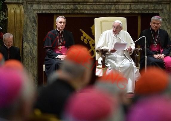 En el encuentro en la Sala Clementina del Palacio Apostólico Vaticano, Francisco manifestó su alegría por encontrarse con todos ellos para intercambiar las felicitaciones navideñas y recordó a los colaboradores que murieron este año.