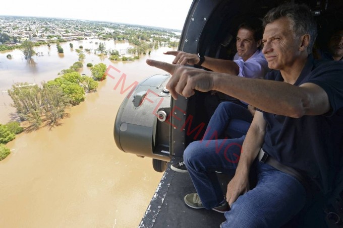 Tal como hizo en agosto pasado el entonces gobernador bonaerense Daniel Scioli ante inundaciones en esa provincia, Macri apuntó contra el cambio climático: “Es una realidad contra la cual tenemos que estar comprometidos”.