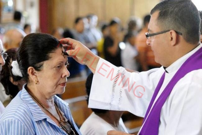 La iglesia católica celebra el Miércoles de Ceniza con la imposición de ceniza a los feligreses que asisten a misa. Es un tiempo de oración, penitencia y ayuno.