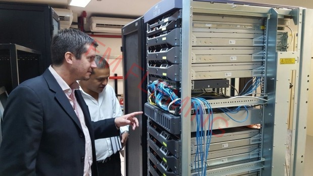 Los funcionarios municipales realizaron un recorrido por la sala de servidores, en donde pudieron constatar la operatividad del data center y la seguridad que tienen los equipos que forman parte del sistema.
