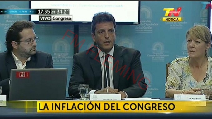 Según el IPC Congreso, la inflación de noviembre fue de 2,2% y la de diciembre, de 3,8%. A iniciativa de Sergio Massa, diputados de la oposición retomaron la elaboración del bautizado en 2007 "IPC Congreso" para medir la inflación. Esto ocurrió luego de que el Gobierno nacional decretase la "emergencia estadística" y suspendiese la publicación de estadísticas por parte del Indec. El líder del frente Unidos por Una Nueva Alternativa (UNA) puso a cargo del proyecto al economista y diputado Marco Lavagna.