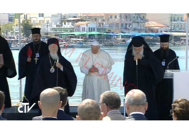 He venido aquí con mis hermanos, el Patriarca Bartolomé y el Arzobispo Jerónimo, sencillamente para estar con ustedes y escuchar sus historias. Hemos venido para atraer la atención del mundo ante esta grave crisis humanitaria y para implorar la solución de la misma. Como hombres de fe, deseamos unir nuestras voces para hablar abiertamente en su nombre. Esperamos que el mundo preste atención a estas situaciones de necesidad trágica y verdaderamente desesperadas, y responda de un modo digno de nuestra humanidad común.