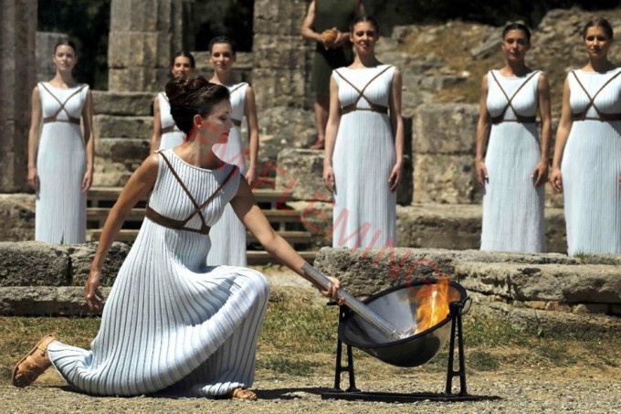 Seguidamente, en una lenta coreografía, la 'gran sacerdotisa' encendió la antorcha del primer relevista, el gimnasta griego Leftheris Petrounias, que pasará la antorcha a la ex jugadora brasileña de voleibol Giovane Gavio.