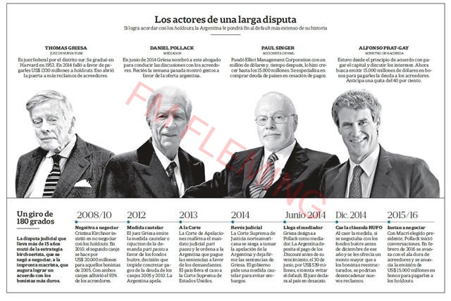 De manera paralela a este pago "se trabajará para abonarles los 3.000 millones de dólares que se le deben desde el 2014 a quienes entraron en los canjes" y cuyos pagos trabó el Juez de Nueva York, Thomas Griesa, hasta que Argentina no le abone lo que le debe a los holdouts.