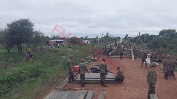 El Ejército construyó un puente en la localidad correntina de Perugorria que permitió reanudar la comunicación vehicular entre caminos y evitar que unos 400 pobladores quedaran aislados como consecuencia de las inundaciones que afectan al Litoral.