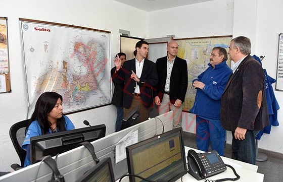 Los gobernadores de Salta, Juan Manuel Urtubey y de Jujuy, Gerardo Morales recorrieron las instalaciones del Centro de Coordinación Operativa y de la Unidad de Análisis Criminal junto a los ministros de Seguridad de ambas provincias, Alejandro Cornejo D'Andrea y Ekel Meyer respectivamente.