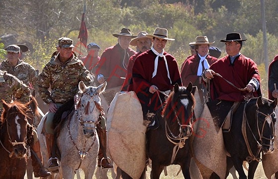 El gobernador Juan Manuel Urtubey, escoltado por el presidente de la Agrupación Tradicionalista Gauchos de Güemes, Carlos Diez San Millán y el comandante de la V Brigada de Montaña, Juan Manuel Pulleiro, encabezó la cabalgata que recorrió los lugares por donde pasó el general Martín Miguel de Güemes herido de muerte en 1821.
