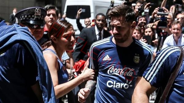 Messi fue uno de los últimos de descender del autobús y apenas dio unos pasos una fanática que quería un autógrafo para su hijo corrió hacia él eludiendo el operativo de seguridad e intentó detenerlo, pero de inmediato la policía se lanzó sobre ella y se la llevó.