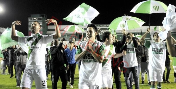Banfield ascendió esta noche a la Primera División, tras empatar 1 a 1 como local con Douglas Haig de Pergamino, y a falta de cuatro fechas por terminarse el Torneo de la B Nacional. El gol tranquilizador del "Taladro" lo convirtió Santiago Salcedo, sobre el cierre de un primer tiempo lleno de dudas, que tuvo la conquista inicial de Esteban Orfano para los pergaminenses.