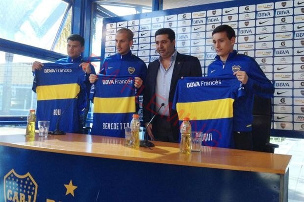 Boca realizó este mediodía la presentación oficial de sus tres nuevos jugadores, el volante Fernando Zuqui y los delanteros Darío Benedetto y Walter Bou .