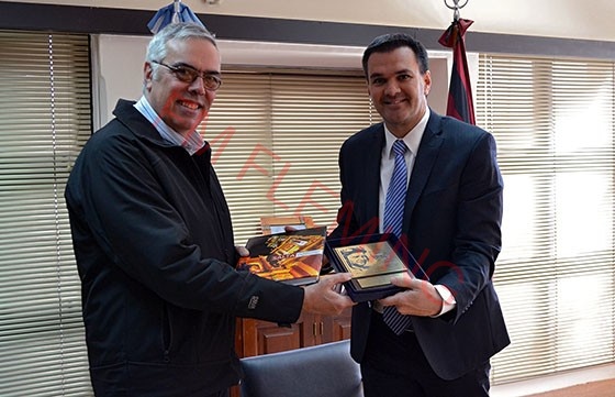 El agradecimiento fue transmitido por el secretario de Gobierno de la Municipalidad de esa ciudad, Ricardo Stoppani. Rodríguez lo recibió este mediodía en Casa de Gobierno oportunidad en la que intercambiaron obsequios.