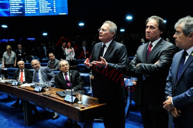 El presidente del Senado, Renán Calheiros, del Partido del Movimiento de la Democracia Brasileña (PMDB), del interino Michel Temer, lamentó a los gritos que "Brasil y el mundo pueden creer que estamos pasando una imagen de que esto se transformó en una discusión que parece de un hospital psiquiátrico".