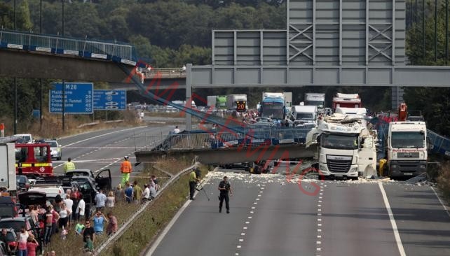 Inglaterra: se derrumbó un puente y cayó sobre dos camiones