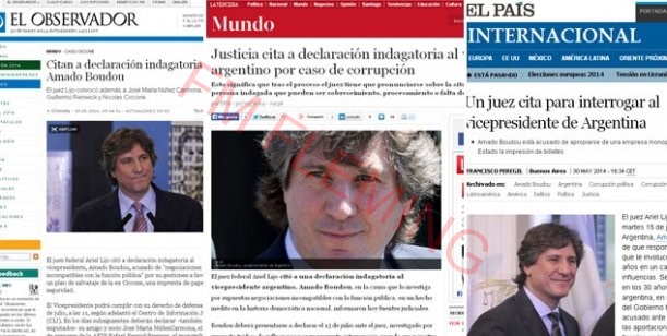 Por su parte, el diario ABC de España destacó que "el vicepresidente de Argentina" está "a un paso del procesamiento" por lo que remarcó que se "complica el escenario" para Boudou" y "para la presidente que lo eligió, a dedo, para acompañarlo en las últimas elecciones".