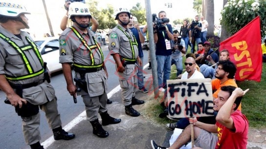 Según informan medios locales, decenas de maestros y representantes de partidos políticos de la izquierda radical, como el Partido Socialista de los Trabajadores Unificado (PSTU) y el Partido Socialismo y Libertad (PSOL), realizaron la manifestación en demanda de mejores condiciones de trabajo y contra la realización del Mundial.