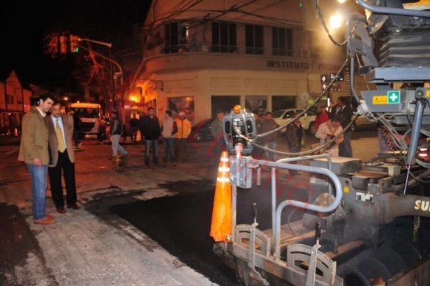 Desde las 22.30 de ayer, obreros municipales trabajan para concluir con las obras de pavimentación iniciadas la semana pasada en avenida Belgrano. En ese marco, el intendente Miguel Isa recorrió la obra junto al Gobernador, y al Ministro de Economía de la provincia, Carlos Roberto Parodi.