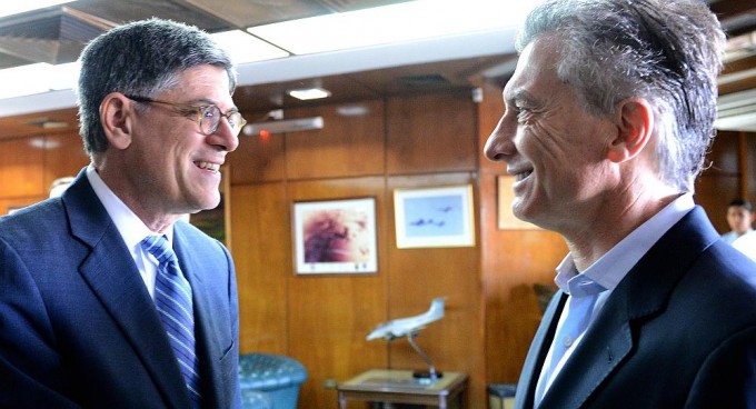 El presidente Mauricio Macri se reunió este lunes con el secretario del Tesoro de los Estados Unidos, Jack Lew, antes de iniciar su viaje a Colombia.