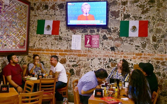Las pantallas de televisión subieron el volumen para anunciar que el debate presidencial comenzaba y la comunidad estadounidense reunida en el restaurante Pinche Gringo BBQ comenzó a aplaudir. Hombres, mujeres, familias completas de americanos o gringos, o “pinches gringos” -como los llaman aquí- tenían esta noche una razón muy particular para reunirse a coro: no apoyar al candidato republicano Donald Trump.