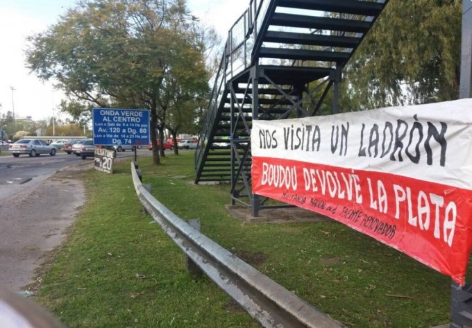 Nos visita un ladrón , el cartel de "bienvenida" que esperaba a Boudou en La Plata