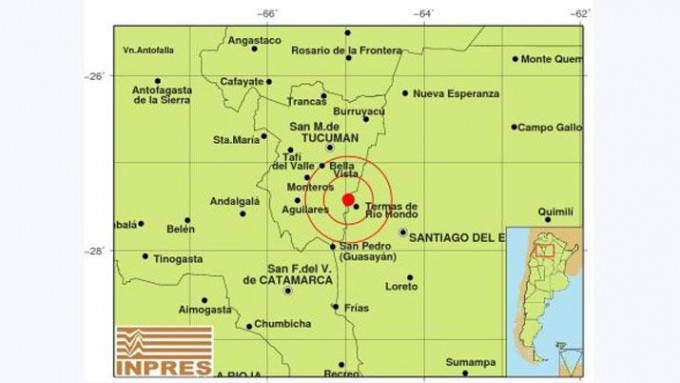 Tras varios minutos, el organismo nacional encargado de brindar información sobre sismos (INPRES), con sede en San Juan informó que el epicentro se encontraba a unos 45 kilómetros al sudoeste de esta ciudad, y a unos 50 km. al sur de Las Termas, en cercanías a las sierras de Guasayán. En un movimiento de 4.6 en la escala de Ritcher, a unos 8 kilómetros de profundidad.