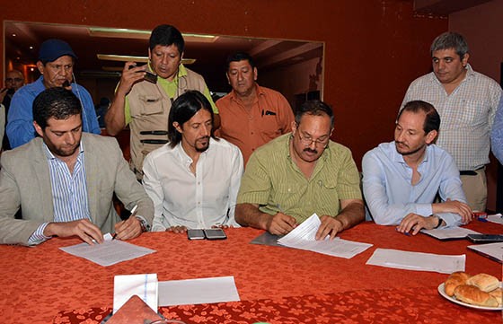 El ministro de Ambiente y Producción Sustentable, Javier Montero, y el intendente de Tartagal, Sergio Leavy, firmaron ayer un convenio por el cual el organismo provincia aportará 1,2 millones de pesos al municipio para la ejecución de un Proyecto Integral de Producción Porcina denominado “Plantar”. La iniciativa contempla acciones que incluyen el fortalecimiento de un grupo de 11 pequeños productores de cerdos y la instalación de una carnicería municipal, adonde los vecinos podrán comprar carne de cerdo a precios económicos, ya que se eliminará la intermediación de otros actores.