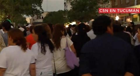 Cientos de personas marcharon alrededor de la plaza Independencia, en el centro de la capital tucumana, para pedir el pronto esclarecimiento de la muerte del cura Juan Viroche, quien apareció ahorcado este martes en su parroquia de la localidad de La Florida.