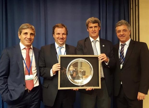 Argentina’s Alfonso Prat-Gay accepting Euromoney's Finance Minister of the Year award in Washington #IMFmeetings