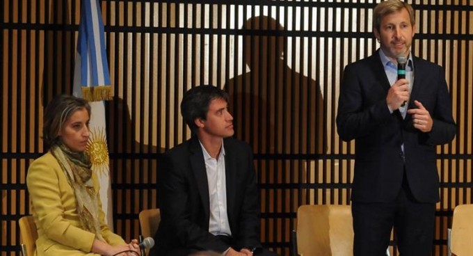 El ministro del Interior, Obras Públicas y Vivienda de la Nación, Rogelio Frigerio, junto al secretario de Asuntos Políticos de esa cartera, Adrián Pérez, encabezó una nueva presentación de la ley de Acceso a la Información Pública, que "termina con los secretos del Estado en los actos públicos".