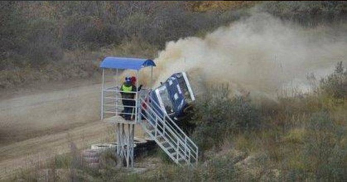 Durante un Rally en Siberia, un auto impactó contra la torre de control en la que se encontraban dos comisarios deportivos de la carrera. Uno de los comisarios falleció al instante y el otro fue trasladado al hospital.