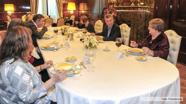 La reunión se realizó en el Comedor Presidencial, donde almorzaron sopa de tomates, bife con guarnición y helado con trozos de chocolate.