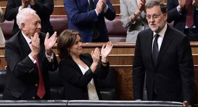 Como estaba previsto, Rajoy obtuvo el apoyo de los diputados del Partido Popular (PP), de los liberales de Ciudadanos y de los regionalistas de Coalición Canaria, logrando 170 votos a favor. El resto de partidos votaron en contra del conservador y en el Partido Socialista (PSOE) hubo una división.