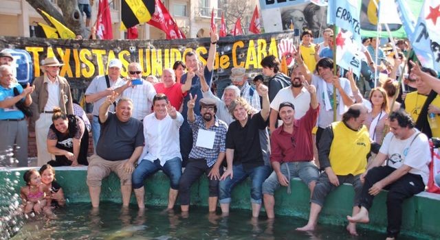 Boudou mojó los pies en la fuente de Plaza de Mayo y fue echado del acto de las CTA