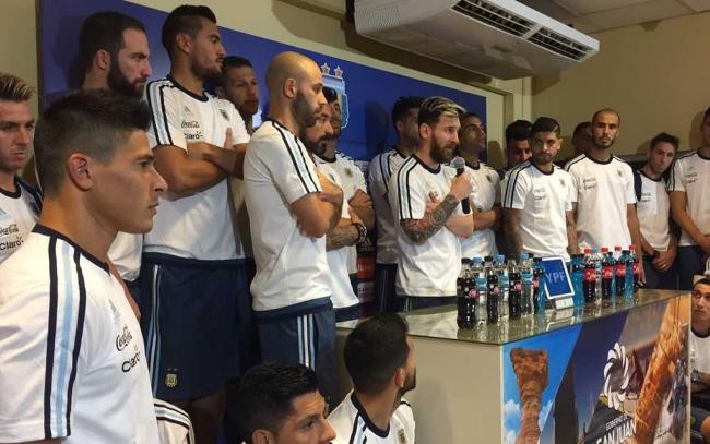 "Perdón el desorden, pero decidimos dar la cara. Acá se sabe todo, estamos acá para comunicarles que hemos tomado la decisión de no hablar más con la prensa, ustedes deben saber por qué. Recibimos muchas acusaciones, muchas faltas de respeto pero no dijimos nada. La acusación que le hicieron a Lavezzi es muy grave. Si no salimos a decir nada, la gente cree que es así. La gente compra lo que se dice. Decidimos cortarlo de una vez", dijo Messi, que tomó la posta y habló por el grupo.
