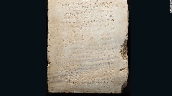 Se trata de una losa de mármol de 60 centímetros y 52 kilos que tiene inscripciones en un antiguo alfabeto hebreo llamado samaritano.