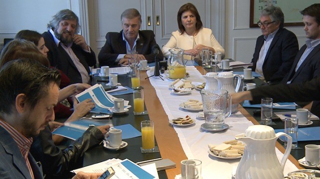 En una rueda de prensa con periodistas, junto al ministro de Comunicaciones, Oscar Aguad, Bullrich ratificó que la gestión de registrar a todos los clientes de celulares quedará en manos de las operadoras a cambio de que informen en tiempo real las anomalías.