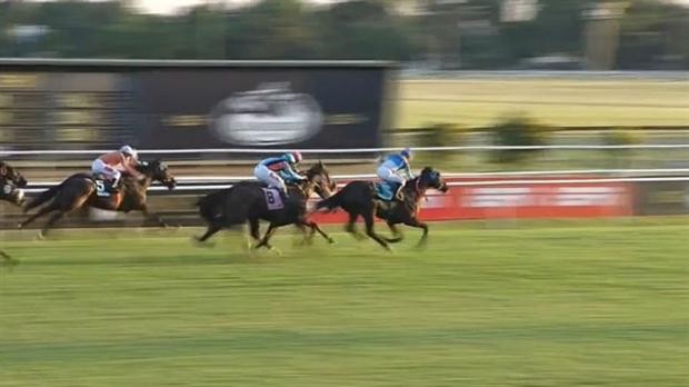 Quiz Kid, con la monta del jinete Altair Domingos, corrió muy firme en la punta y entró a la recta con notable decisión de puntero. Para muchos ya había ganado. Pero las carreras se ganan en el disco y no antes.