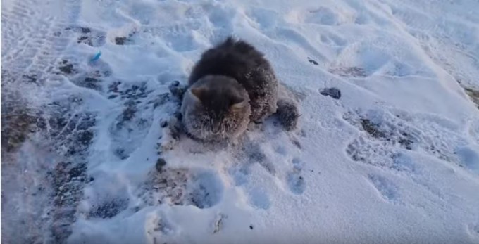 Ocurrió en Rusia, el felino quedó adherido al suelo a causa de la nieve y la manera en que le salvaron la vida fue impresionante.