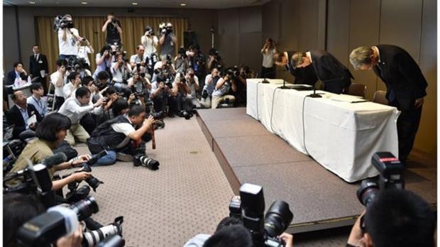 Imagen:Es habitual que los presidentes de las corporaciones ofrezcan disculpas por errores, como ocurre aquí con los jefes de Mitsubishi el pasado mes de agosto por el escándalo del kilometraje.. Foto: Reuters